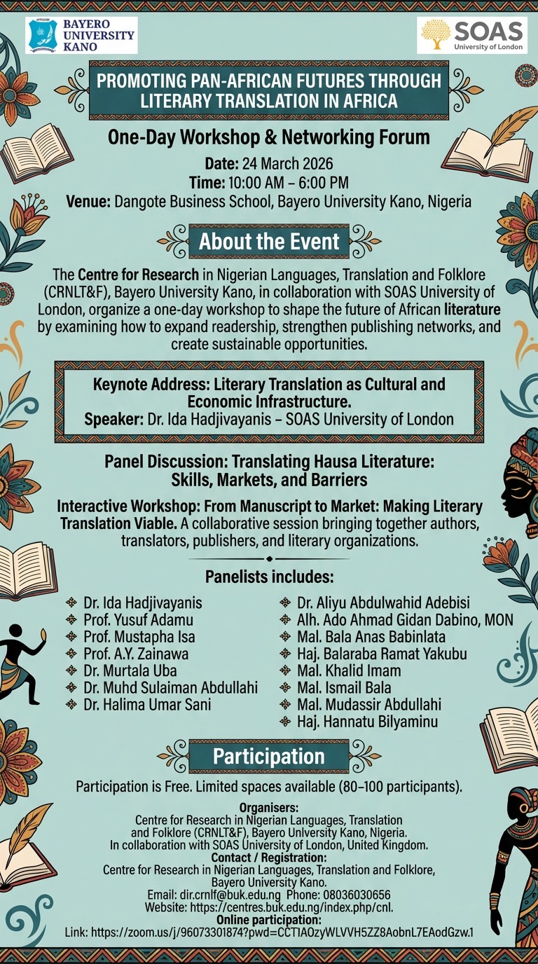Panel discussions will explore practical issues including publishing translated African literature, developing sustainable translation careers, and expanding the circulation of literature written in Nigerian languages such as Hausa.